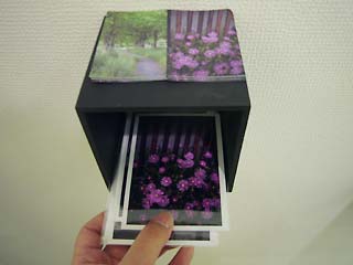 写真展なのに壁には額もパネルもありません。ギャラリー内に設置された写真の束を来場者が1枚1枚手にとって鑑賞するこという、ちょっと変わった展覧会です。 作品に手を触れるという、通常の展覧会ではできない行為と、観る人に順番や構成を委ねるという試みも併せもっています。 なお、前に観た人の指紋等がプリントについていることもありますが、それもコンセプトの一環であるとご理解のうえでの鑑賞をお願い致します。