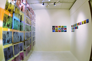 この展示では、レインボーカラーの7色をモチーフにした写真をタテヨコに連結して壁面状にしたものを天井から4面吊るす事により、写真で囲われた小さな空間をギャラリーの中に作ります。 1つ1つの写真はポートレートの背景にさまざまな色を重ねて展示します。例えば笑みを浮かべる女性、背景が青い色であればどうでしょう?その笑みは少し悲しみを含んだものに見えるかもしれません。 色を重ねることによって、その人の持つ背景や表情の意味を想像させます。背景=内面性ととらえ、実験的な写真を展開します。